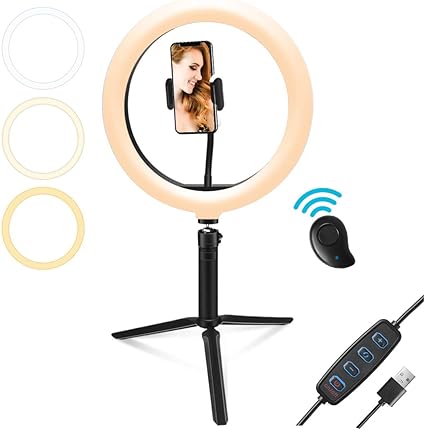 - ANNEAU DIMMABLE -Incluant 3 modes d’éclairage couleur: blanc froid, blanc chaud et lumière chaude,et chaque mode a 10 niveaux de luminosité,un total de 30 options différentes,commutez facilement la luminosité entre 3300 K et 6500 K,satisfera toutes vos exigences dans différents conditions.