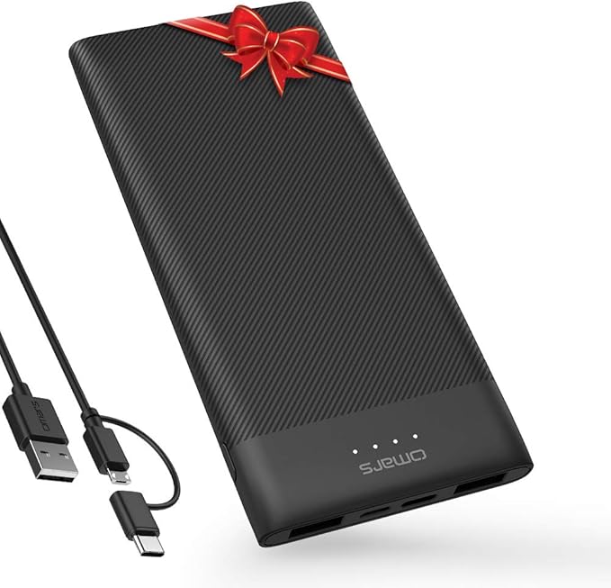 - 【Powerbank Ultra Fine et Légère】Dimensions 145*68,5*13,5mm (5,70*2,69*0,53inch), Poids : 207g, très facile à utiliser et à porter pour un rechargement urgent. Le design de la surface à texture rayée offre un grand confort à la main.