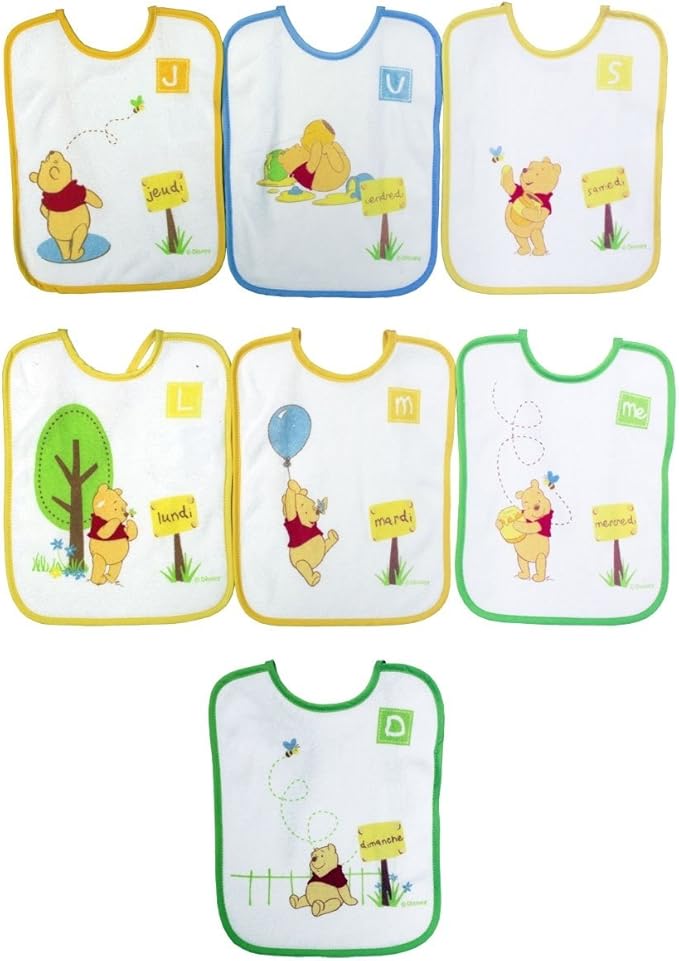 Bavoir Naissance Imprimé Winnie 20 x 25 cm – Lot de 7