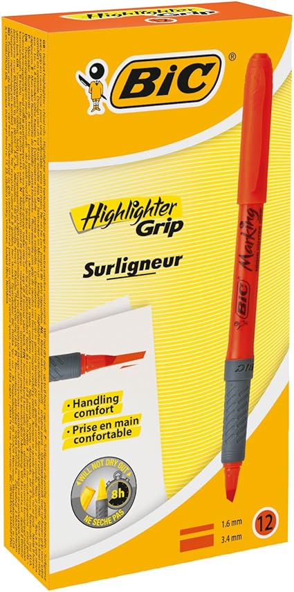 • Les surligneurs BIC Highligther Grip sont dotés d’un grip en caoutchouc rainuré, pour un tracé confortable et toujours bien calibré