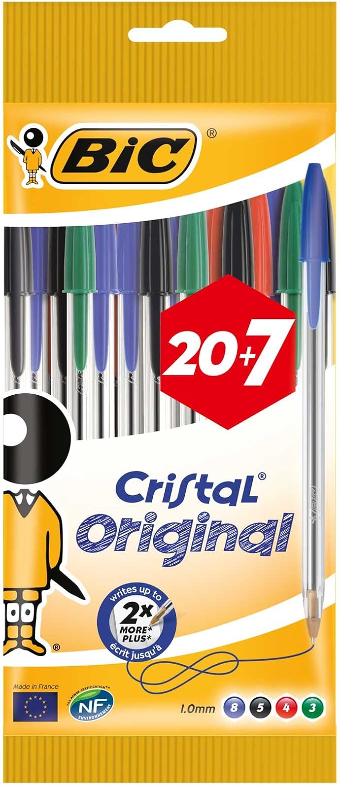 - Le BIC Cristal Original est le stylo-bille emblématique le plus vendu au monde. 27 stylos qui se déclinent en bleu, rouge, vert et noir