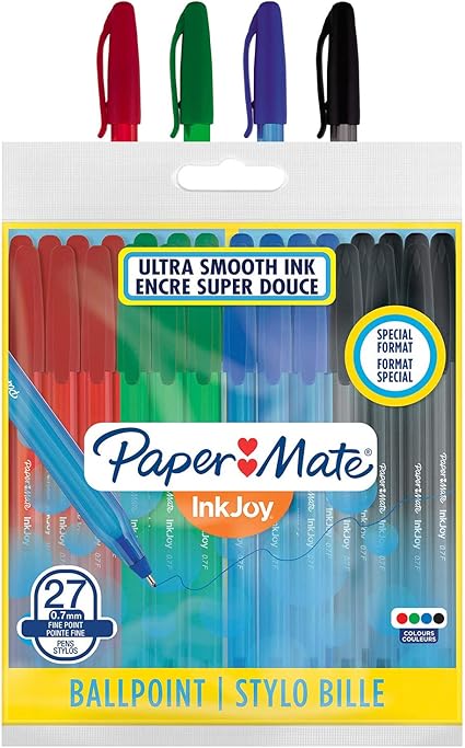- Inclus : stylos à bille avec motifs et encre noire (x10), bleue (x10), rouge (x4) et verte (x3)