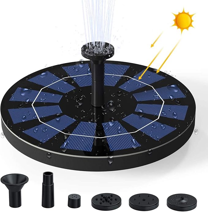 - 【VOUS LE MERITEZ】: Cette pompe solaire écologique est parfaite pour les bains d’oiseaux, les aquariums, les petits étangs, les piscines, les jardins, la circulation de l’eau pour l’oxygène. Elle pulvérise constamment de l’eau, non seulement pour attirer les oiseaux à boire dans votre bain d’oiseaux, mais aussi pour ajouter du plaisir à vos enfants lorsqu’ils jouent dans la piscine et le jardin. C’est un choix parfait pour faire de petits cadeaux à votre famille, à vos amis.