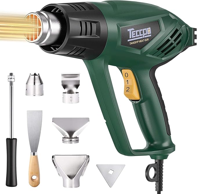 • 【Idée du cadeaux et promotions de Noël】1 x TECCPO Pistolet Thermique, 1 x Bec Réflecteur Cuillère, 1 x Buse Concentrateur de Cône, 1 x Buse de Protection en Verre, 1 x Buse à Concentrateur large, 1 x Grattoir, 1 x Grattoir de Détail, 1 x Manuel de L’utilisateur, 1 x Carte de 2ans promesse de qualite