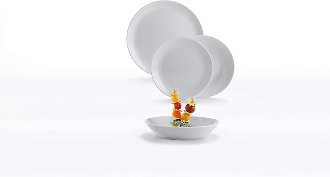 • Composition : 6 assiettes plates de 25 cm 6 assiettes calottes 20 cm 6 assiettes à dessert 19 cm