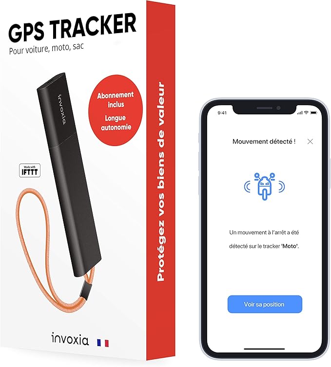 Tracker GPS Invoxia sans Carte SIM avec Alerte Antivol en Temps Réel et Longue Autonomie – Abonnement Inclus – Suivi Voiture, Moto, Scooter, Sac, Enfant, Personne Âgée, Objets de Valeur